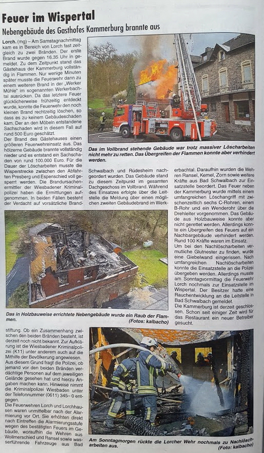 Gebäudeschaden kam. Der Brand des Gästehauses der Kammerburg löste