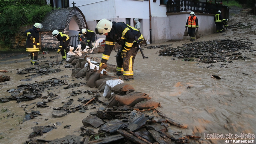 überflutet. Die Feuerwehren und das THW schichteten mit Sandsäcken