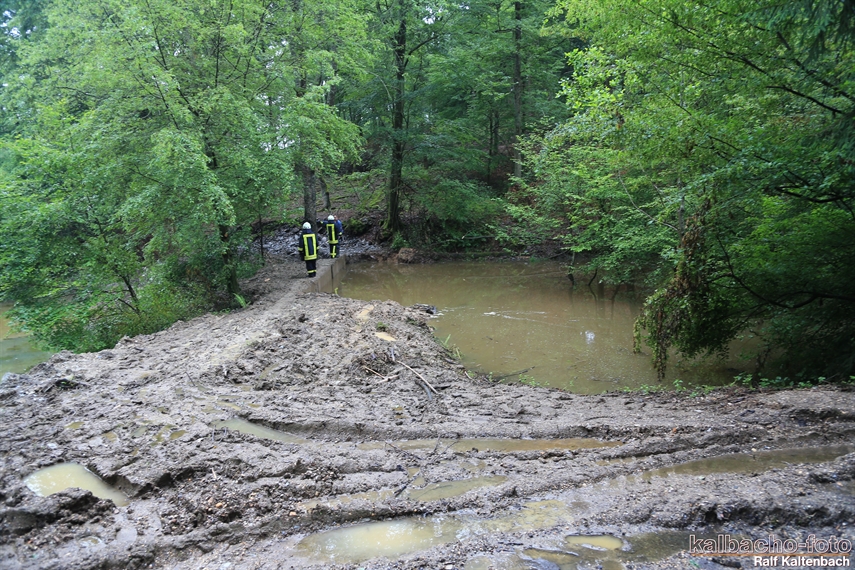 (TL) Erneut wurden die Feuerwehren der Stadt Lorch durch den Wassermeister zur Grube Kreutzberg angefordert. Genau wie beim letzten mal war bedingt durch die heftigen Niederschläge von teils 60 Liter pro Tag die Trinkwasser Gewinnung gefährdet.
