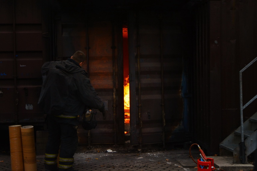 Unter null Sicht und bei ca. 60 Grad ging es in denn Brandcontainer.