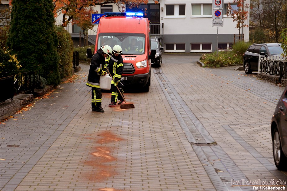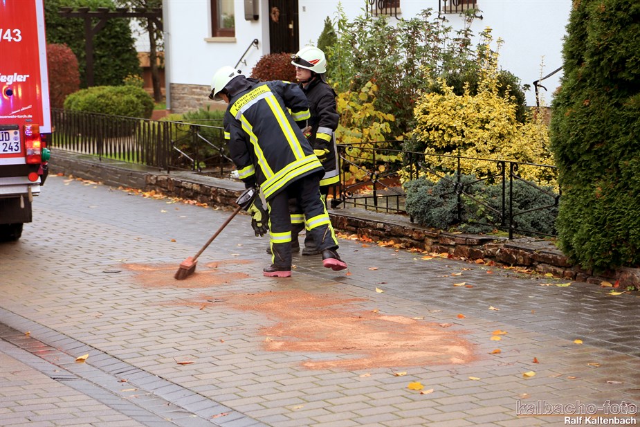 Die Ölspur wurde abgestreut und teilweise aufgenommen.