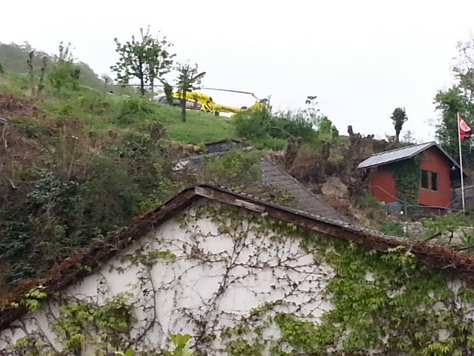 (AL) Patient wurde mit dem Spineboard aus dem Wohnhaus gerettet und an den Rettungsdienst übergeben.