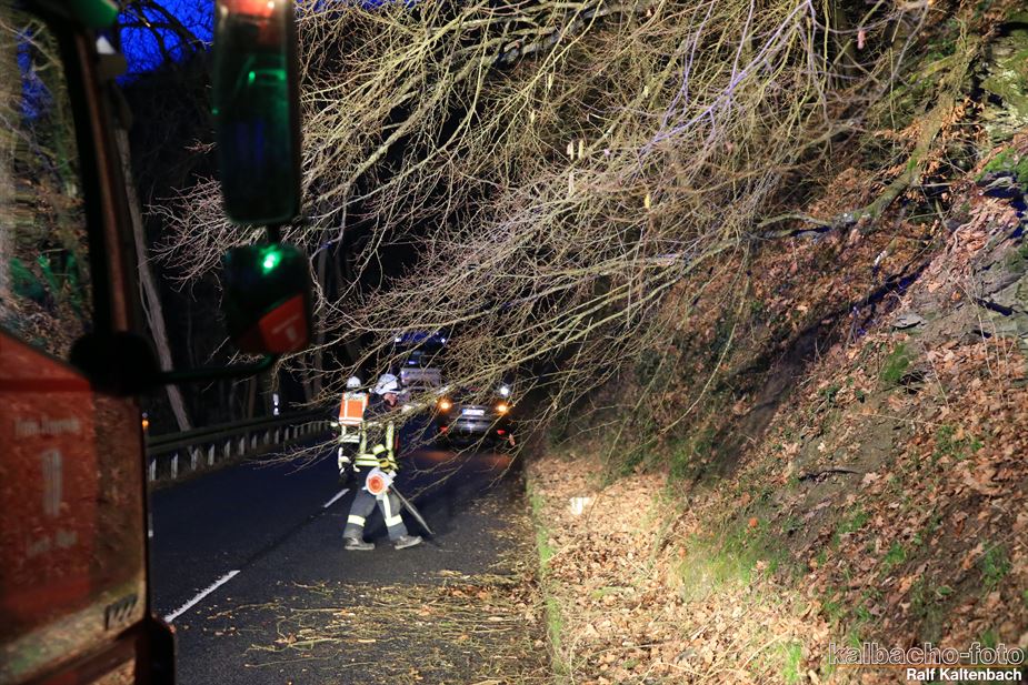 (TL) Die Feuerwehr Lorch wurde zu einem umgestürzten Baum auf die Landstraße Richtung Ransel (L3397) alarmiert. Der Baum hing in ca. 3 Meter Höhe und versperrte eine Fahrspur. Mit einer Motrsäge wurde der Baum zerkleinert und von der Fahrbahn geräumt