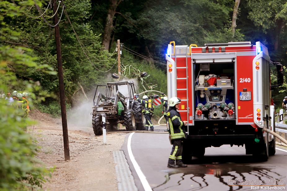 (TL) Die Feuerwehr Lorch wurde zu einem brennenden Traktor auf die Wisperstraße L 3033 alarmiert.
