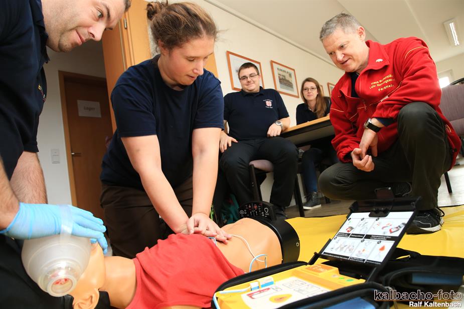 (YM) Am 10.11.2018 fand im Feuerwehrgerätehaus die zweite AED-Rezertifizierung 2018 für einen Teil unserer Voraushelfer statt. Von 10 bis 14 Uhr wurden 5 Mitglieder der Voraushelfergruppe im Ablauf der Reanimation und Frühdefibrillation geschult. Danach mussten sich die Teilnehmern einer schriftlichen und praktischen Prüfung unterziehen. Ein großer Dank an Klaus Wolfenstädter vom ASB für die tollen Schulungen. |