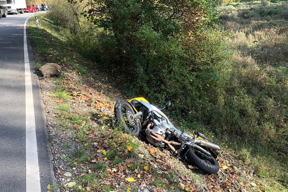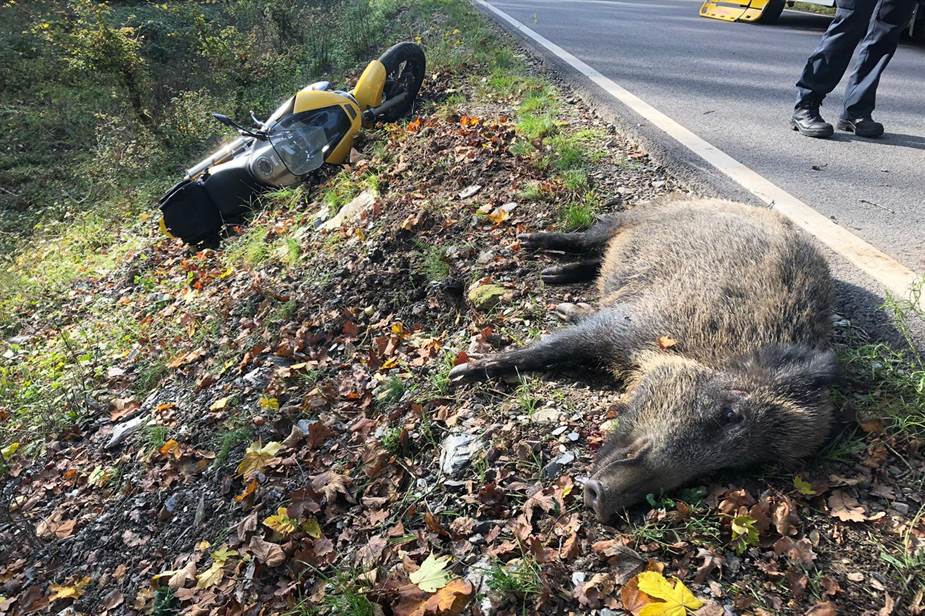 Es war zu einem Verkehrsunfall zwischen einem Motorrad und einem Wildschwein gekommen, das den Unfall nicht überlebte.
