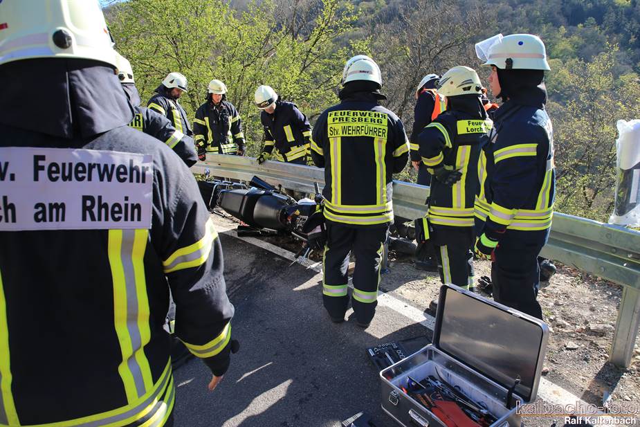 Leitplanke. Bei dem Sturz verletzte sich der Kradfahrer am Fuß. Er wurde