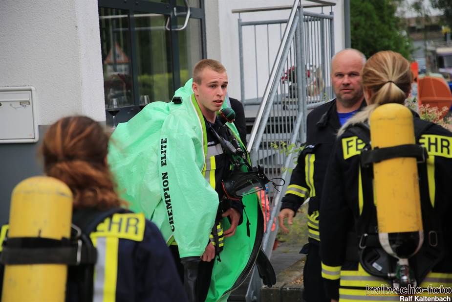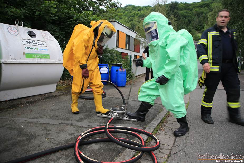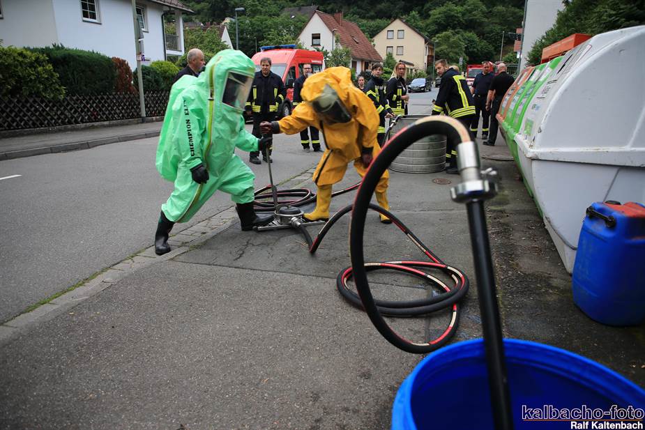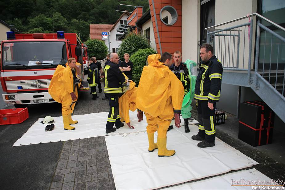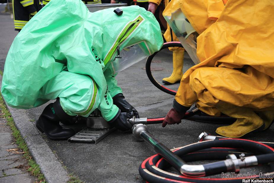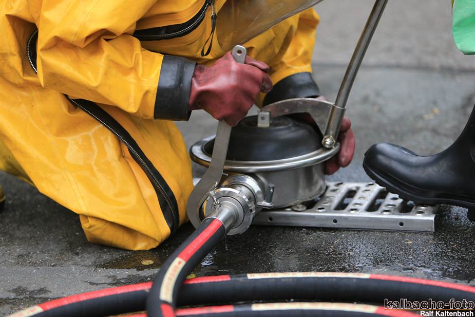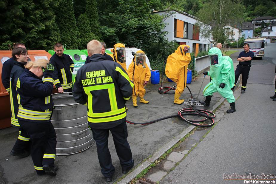 Übung mit dem Gerätewagen Gefahrgut der Feuerwehr Eltville
