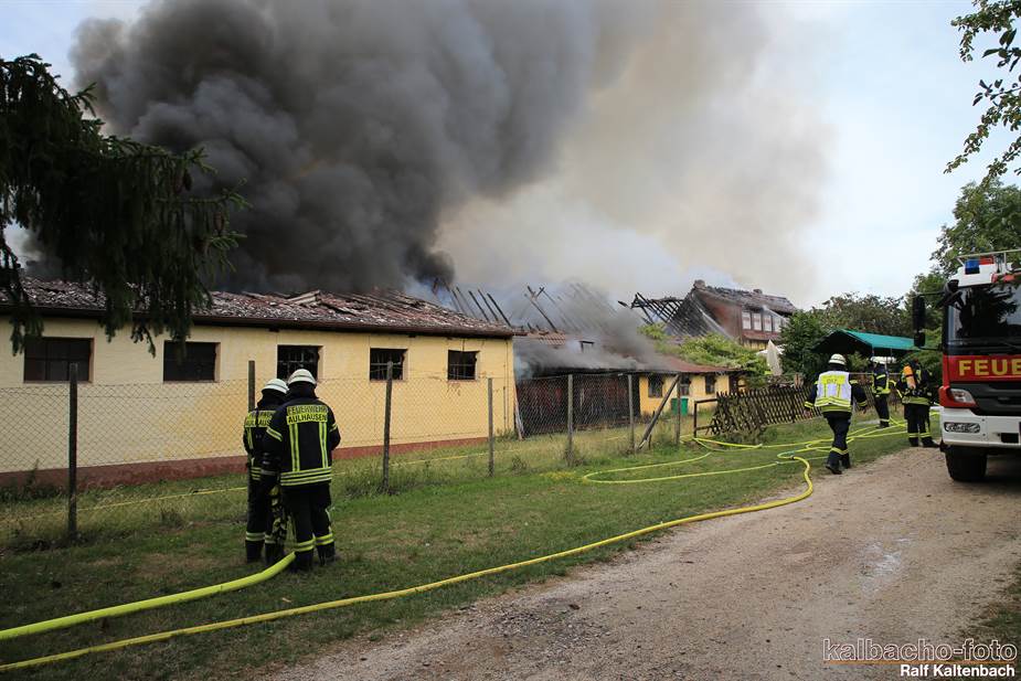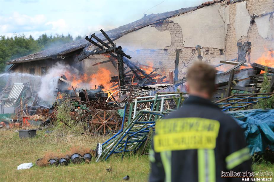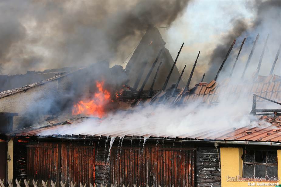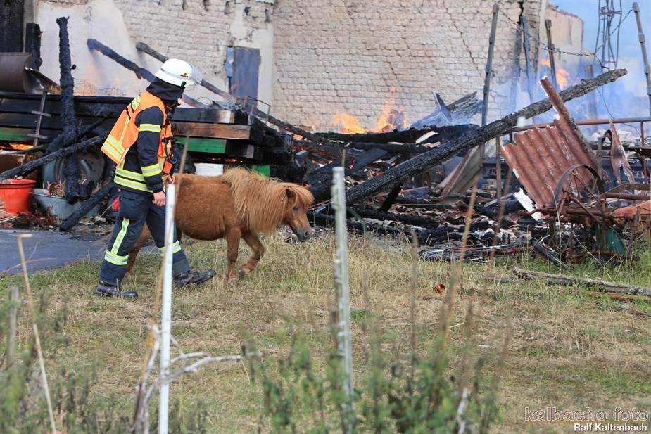 Sonntagabend ein Feuer ausgebrochen. Sowohl die Stallungen als auch