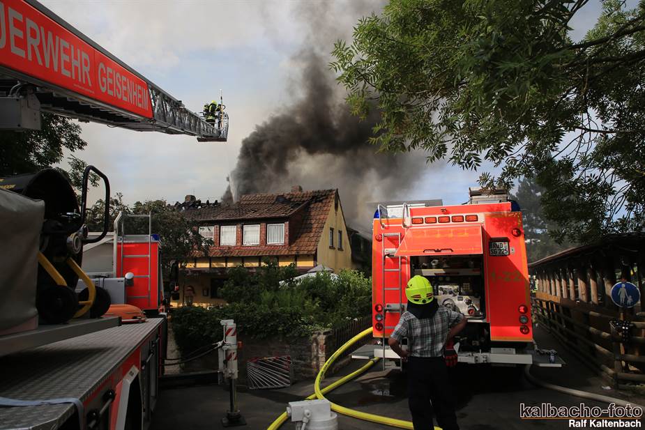 Dachstuhl eines Wohnhauses brannte aus, durch die Löscharbeiten sei das