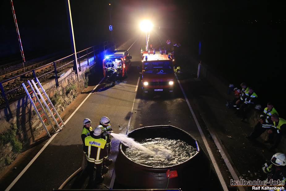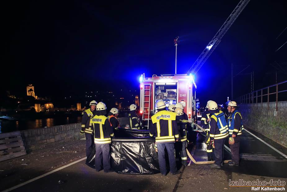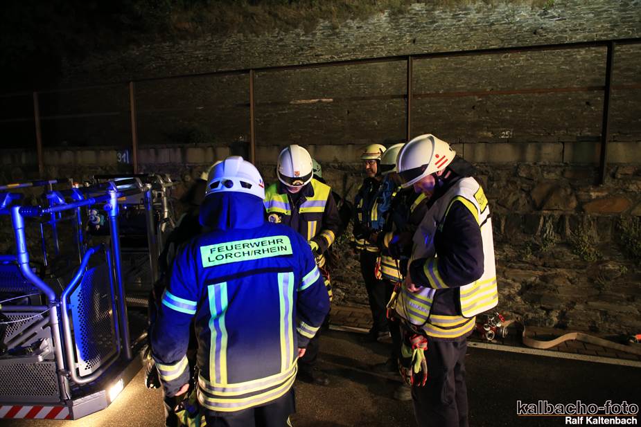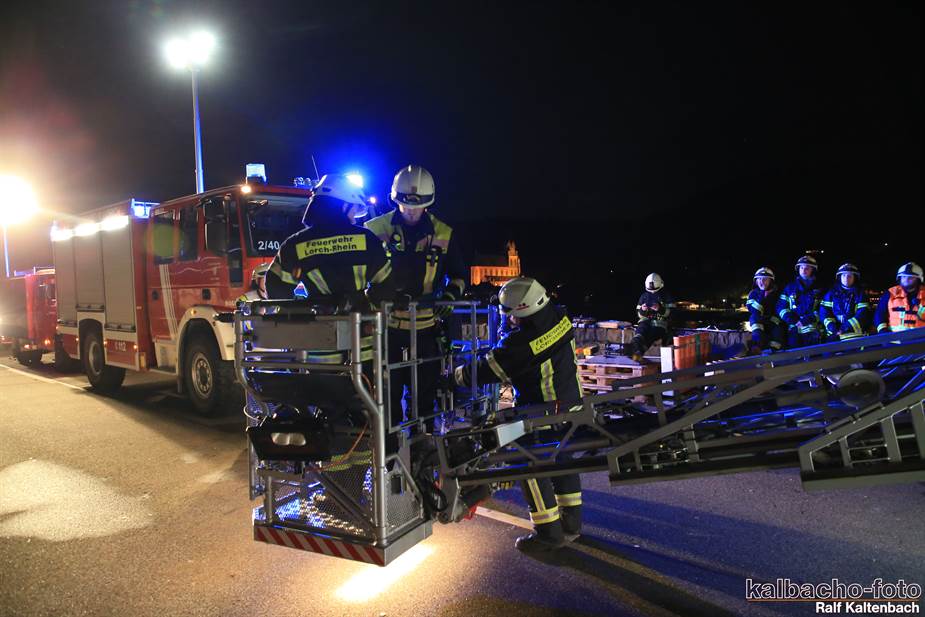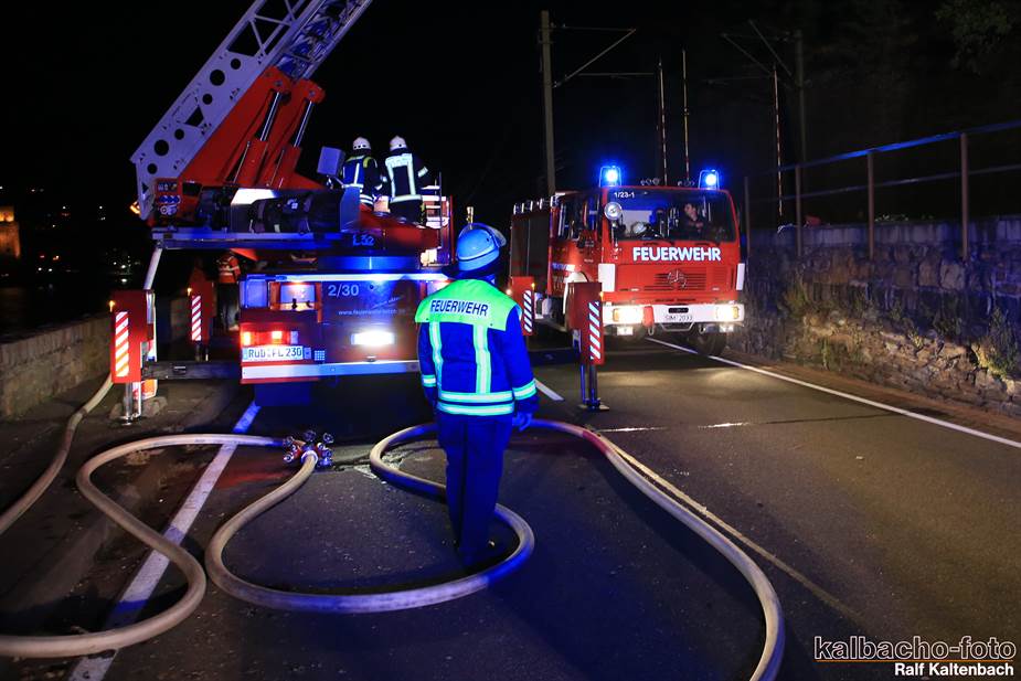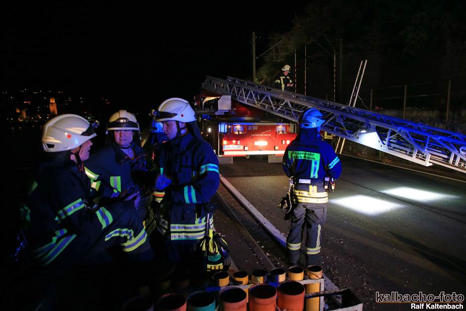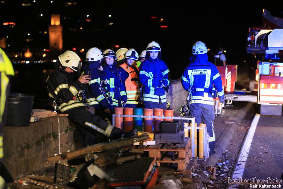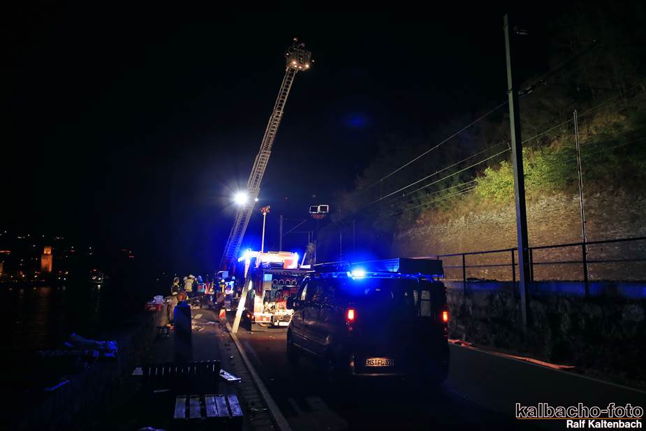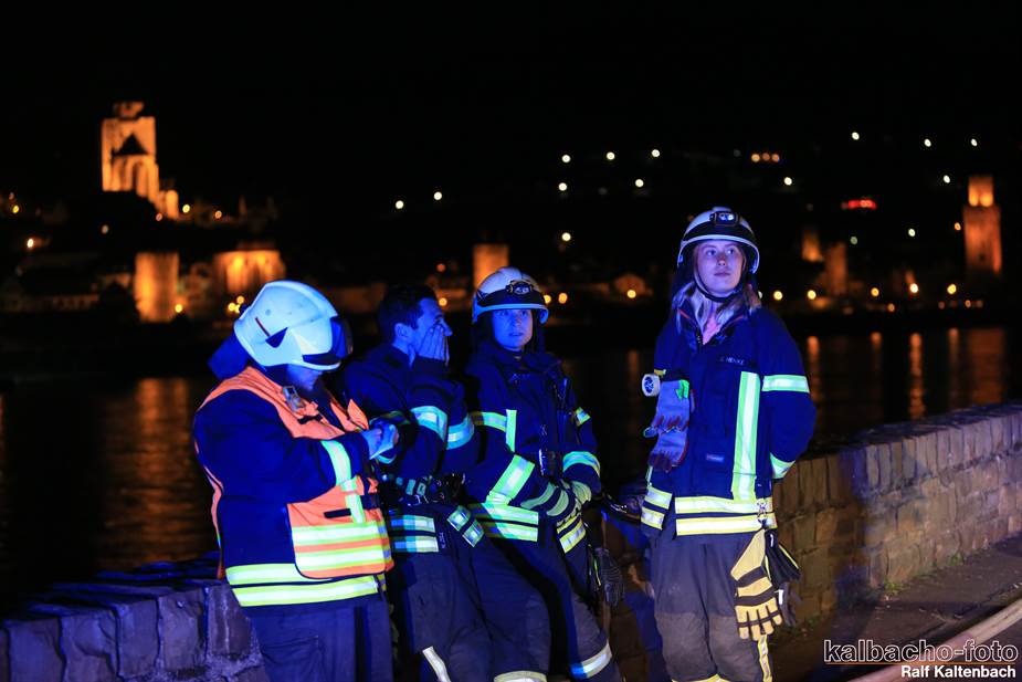 Fw Kaub gerufen. Nach dem Feuerwerk brannte es