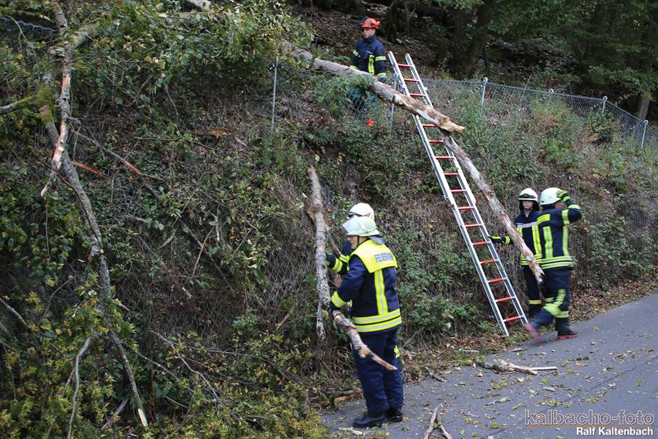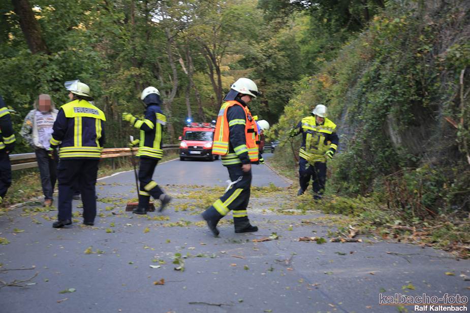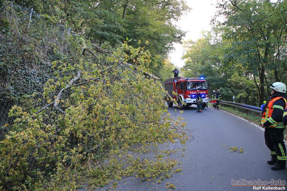 (TL) Die Feuerwehr Lorch wurde zu einem umgestürzten Baum im Kurvenbereich Richtung Sauerthal alarmiert. Mit der Motorsäge wurde der Baum zerkleinert.