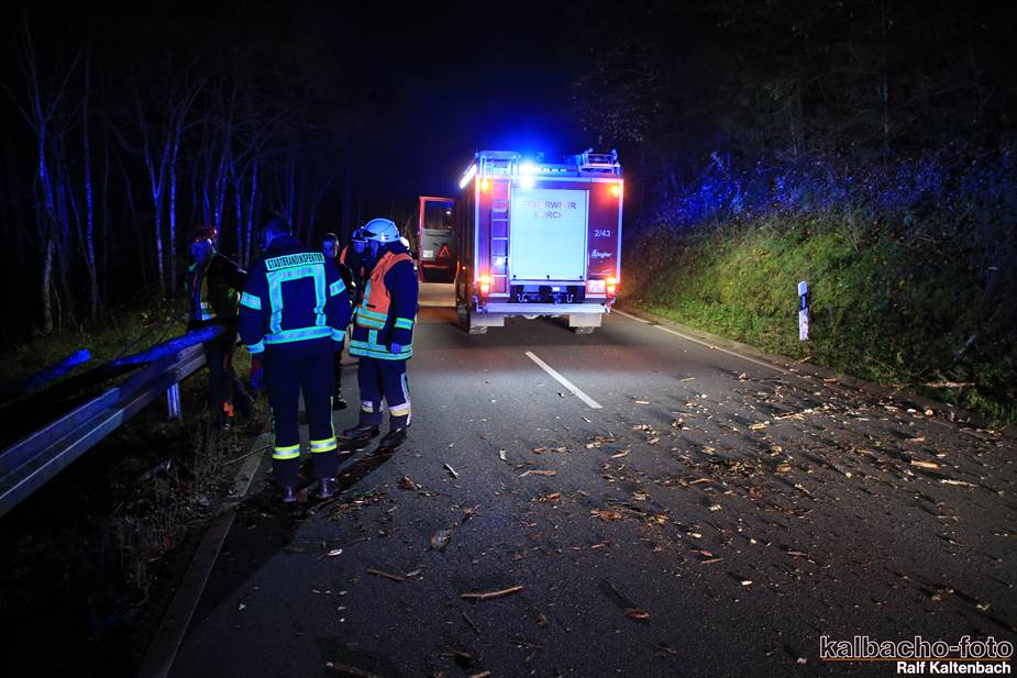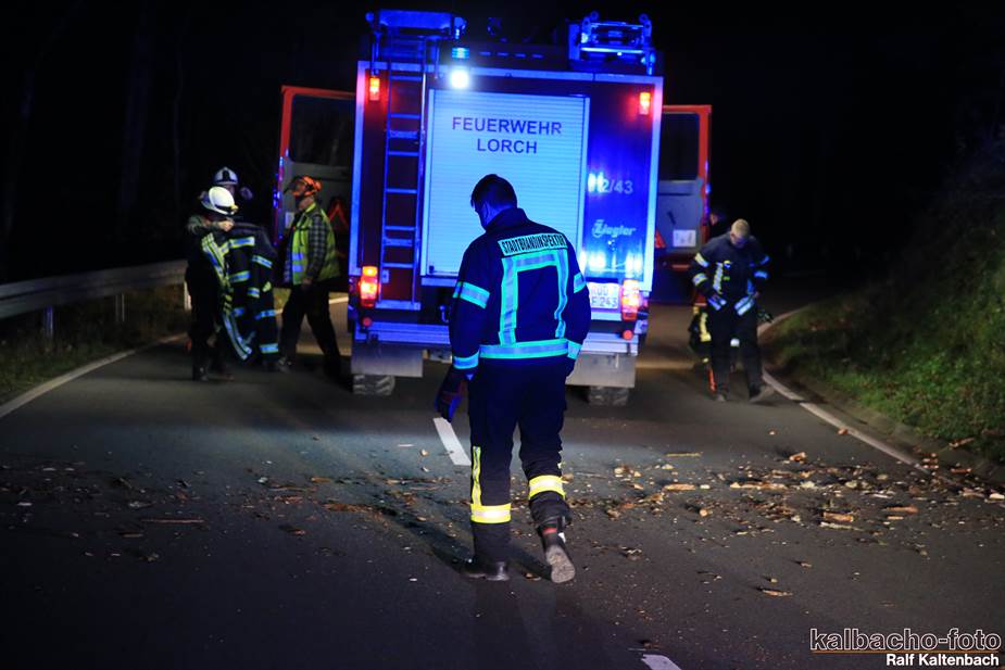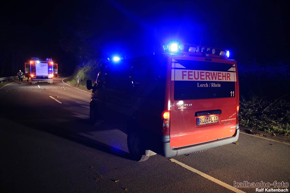 (TL) Die Feuerwehr Lorch wurde zu einem umgestürzten Baum auf die L3033 ins Wispertal alarmiert.