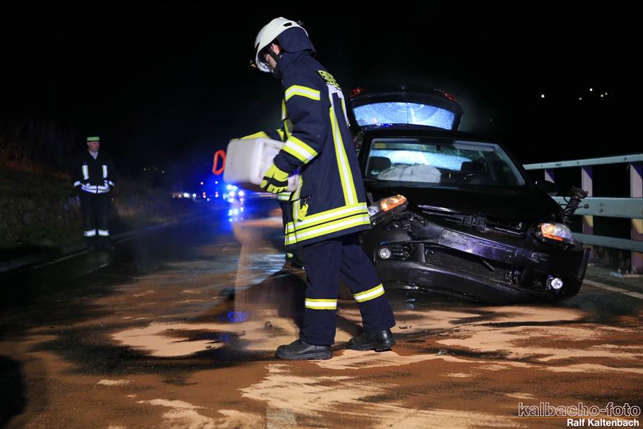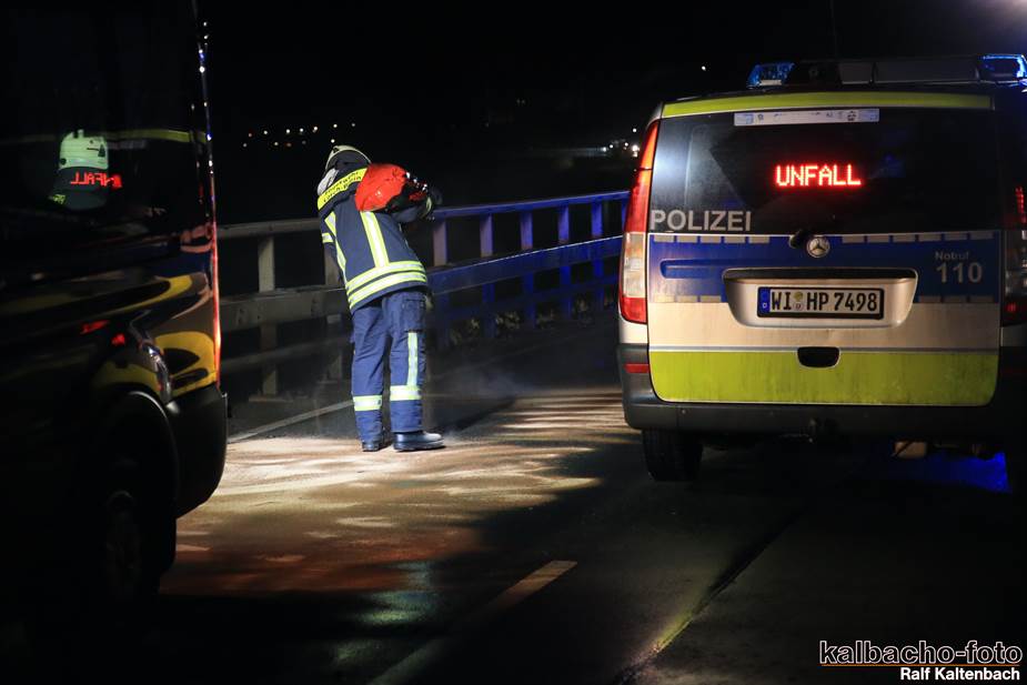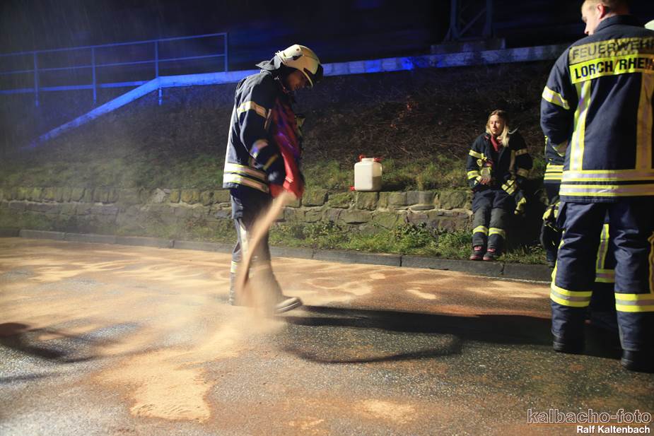 (TL) Die Feuerwehr Lorch wurde auf die B42 Richtung Rüdesheim alarmiert. Hier war ein PKW verunfallt bei dem größere Menge Öl ausgetreten waren.