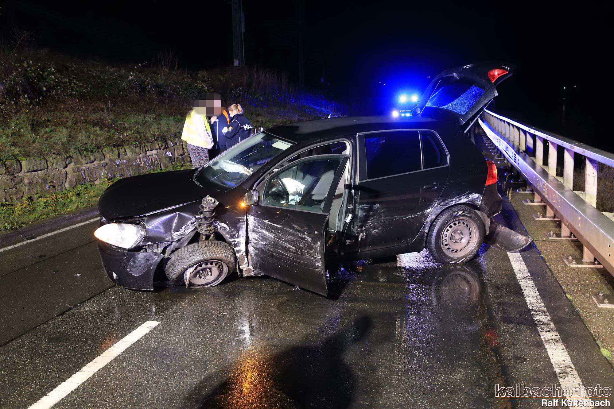 Die Einsatzstelle wurde abgesichert, ausgeleuchtet und Betriebsmittel abgestreut.