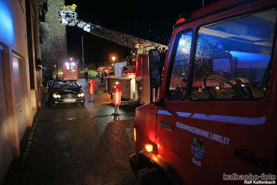 (TL) Die Feuerwehr Lorch wurde mit der Drehleiter überörtlich nach Kaub angefordert.