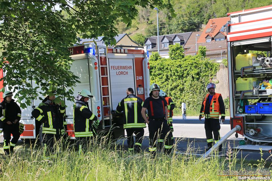 (TL) Die Einsatzkräfte waren noch im Gerätehaus als bereits der nächste Alarm einging. Die Wehr Lorch wurde zu einem Flächenbrand Höhe Autofähre an der B42 gerufen. Mit 2 C Rohren wurde das Feuer gelöscht