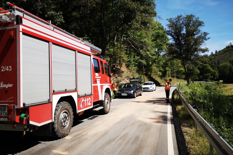 (TL) Die Feuerwehr Lorch wurde zu einem Benzin Austritt aus einem Pkw alarmiert. Der auslaufende Kraftstoff wurde abgestreut