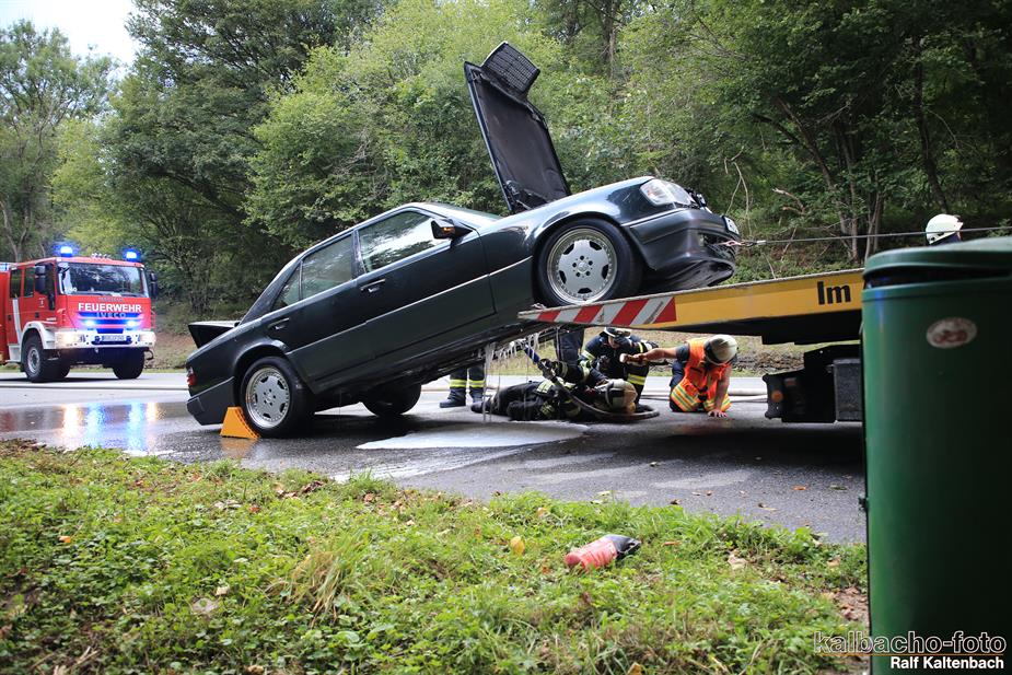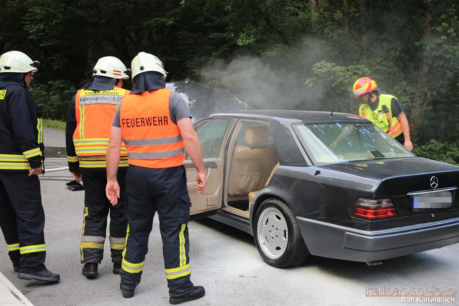 (TL) Die Feuerwehr Lorch wurde zu einem Pkw Brand ins Wispertal gerufen. Das Feuer wurde mit einem C Rohr gelöscht.