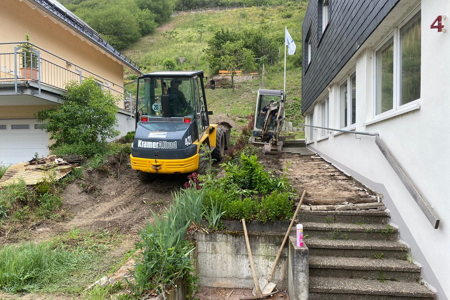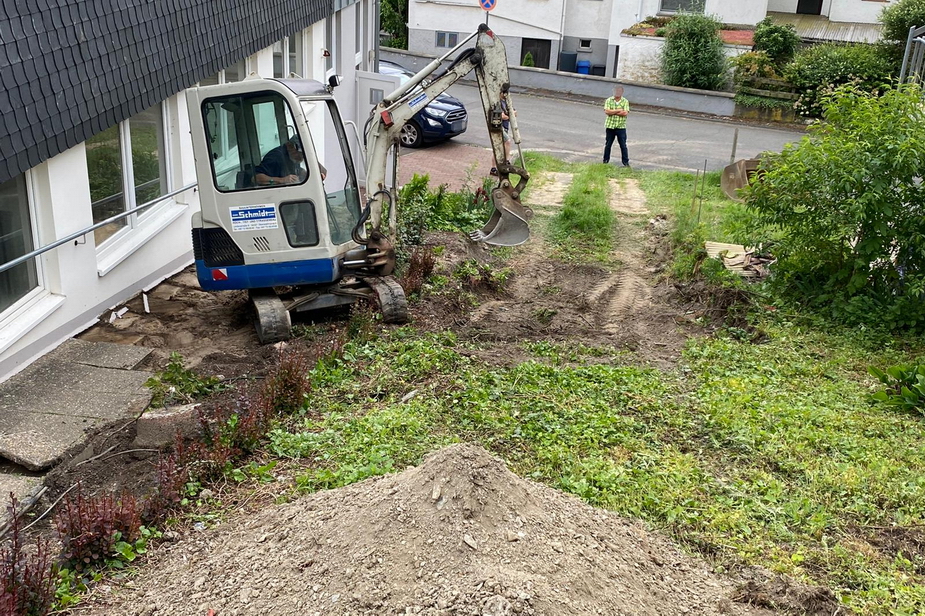 endlich mit den Bauarbeiten der neuen Halle für die Drehleiter begonnen