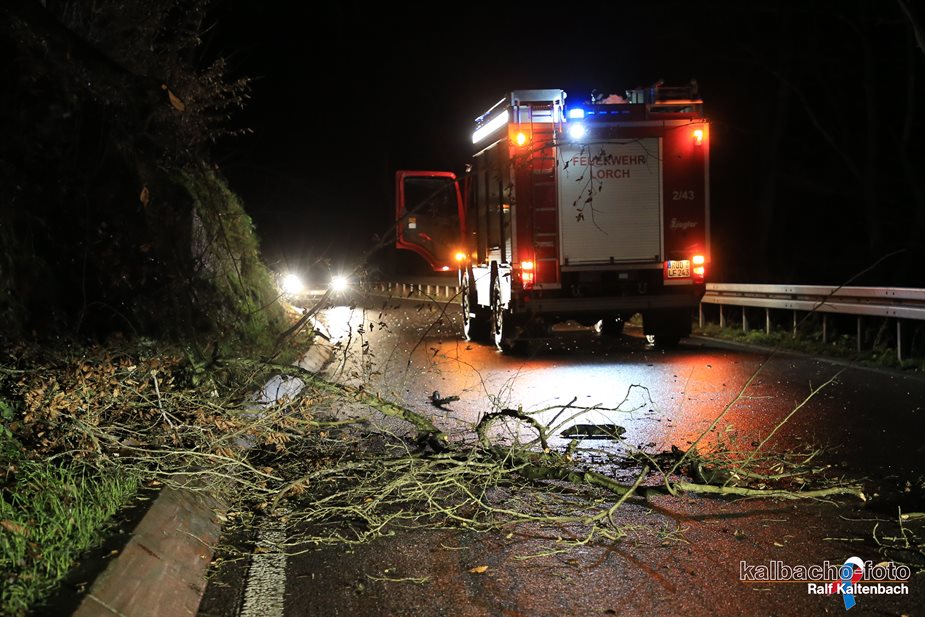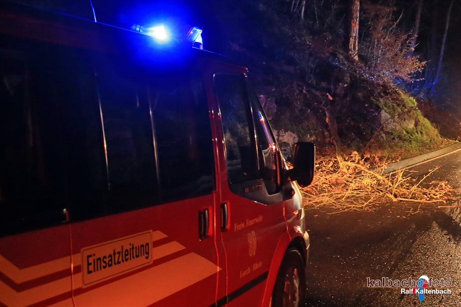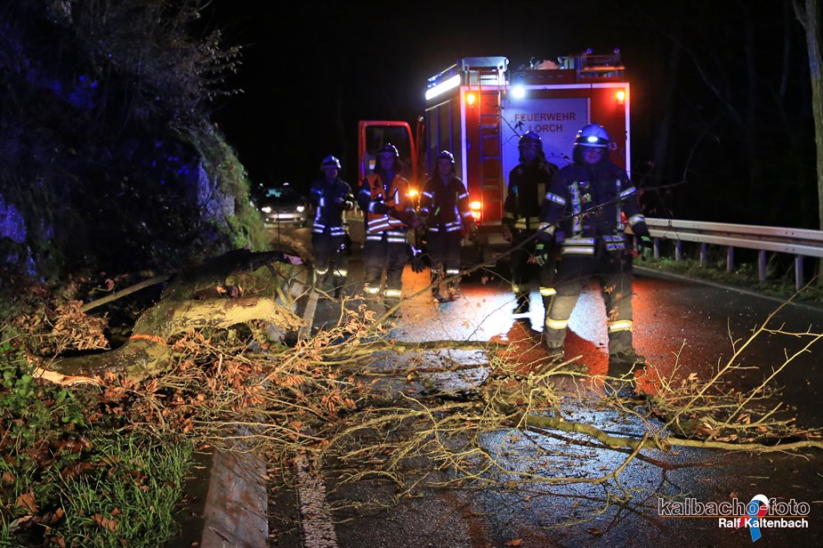 Offizieller Einsatzbericht: (TL) Die Feuerwehr Lorch wurde zu einem Umgestürzten Baum Richtung Presberg alarmiert. Der Baum wurde beseitigt und die Straße frei geräumt
