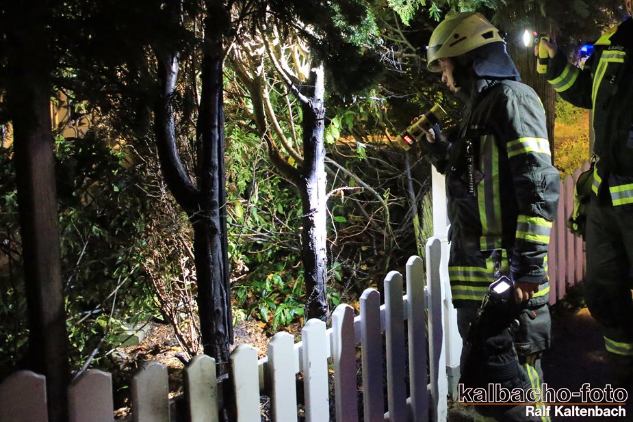 Dort entdeckte sie am Grundstückszaun ein Feuer und eilte nach draußen.