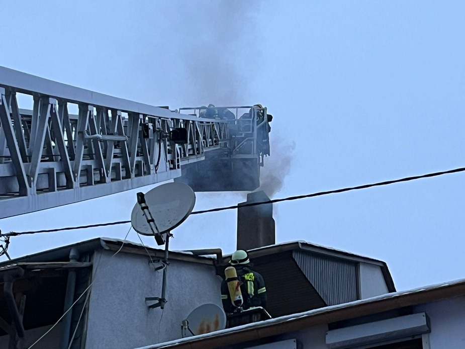 Über die Drehleiter und Löscharbeiten im Gelände wurden insgesamt 6