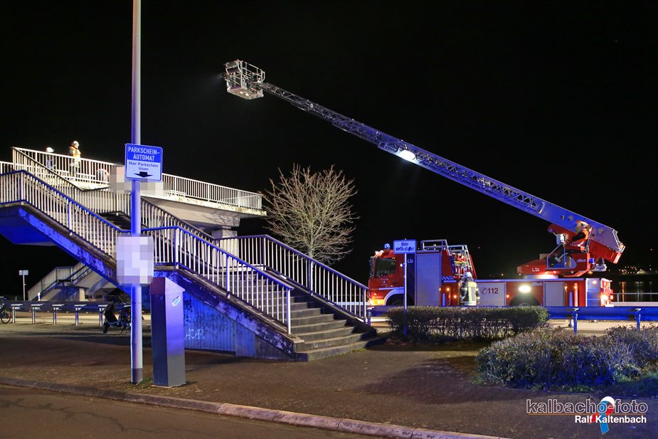 Notfall an die Fußgängerbrücke Höhe der Autofähre alarmiert.