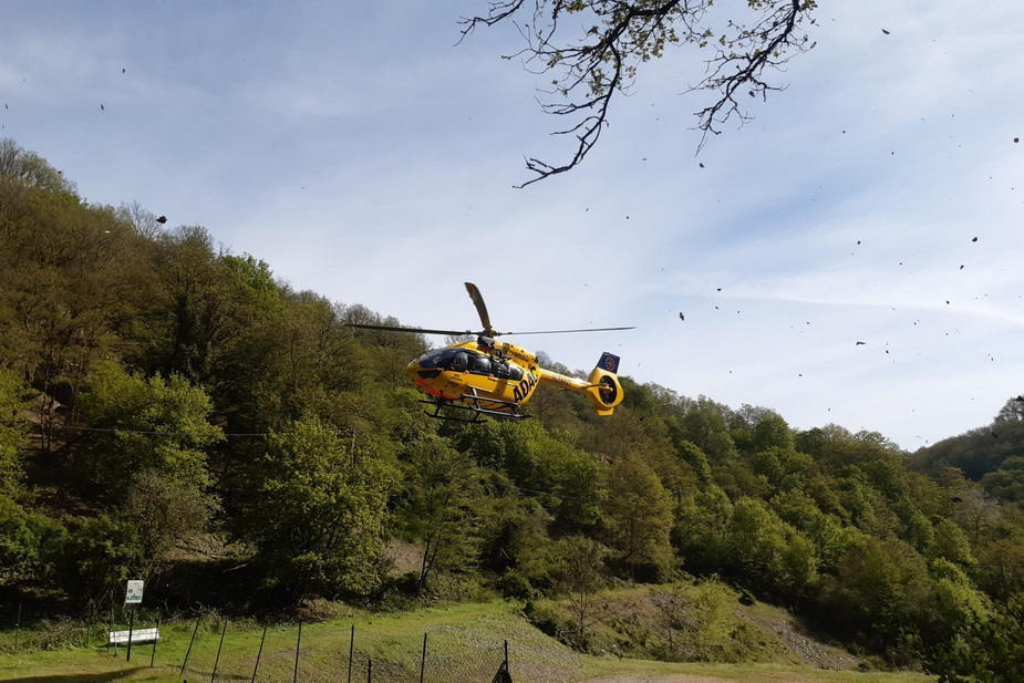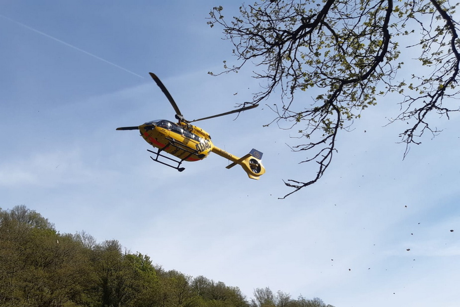 Der Patient wurde zum Rettungshubschrauber verbracht.