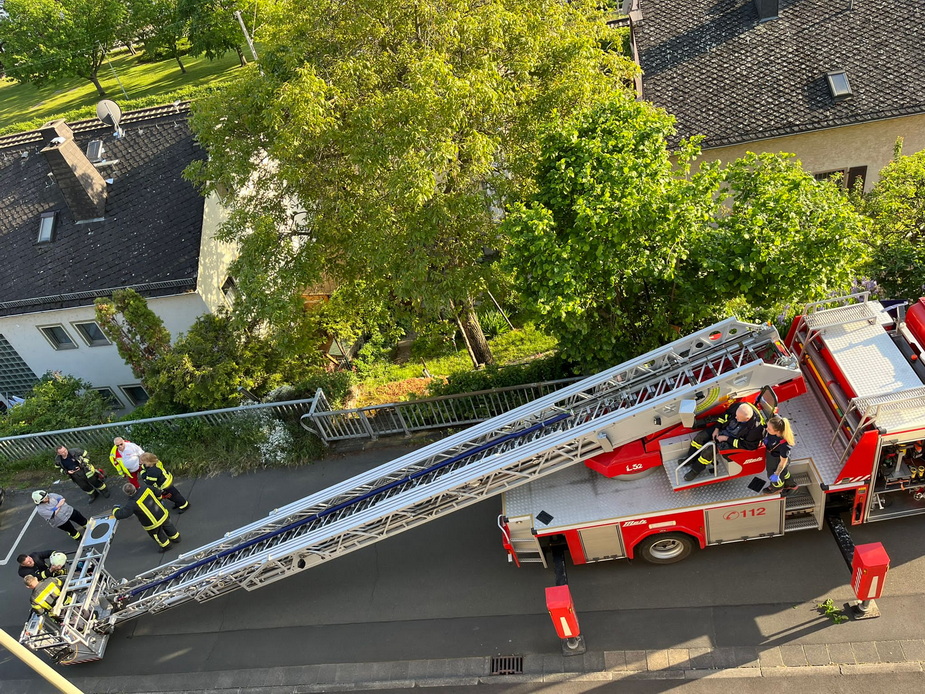 Eine Person musste mit Hilfe der Drehleiter gerettet werden