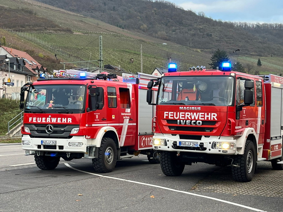 Einsatzfahrzeugen im Rheingau. Insgesamt waren über 55 Einsatzkräfte