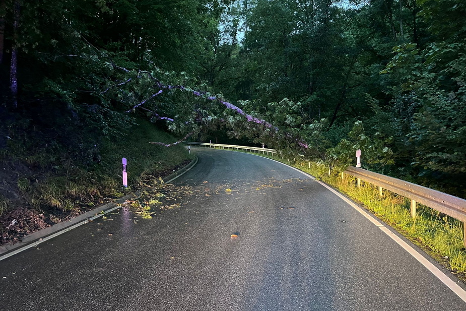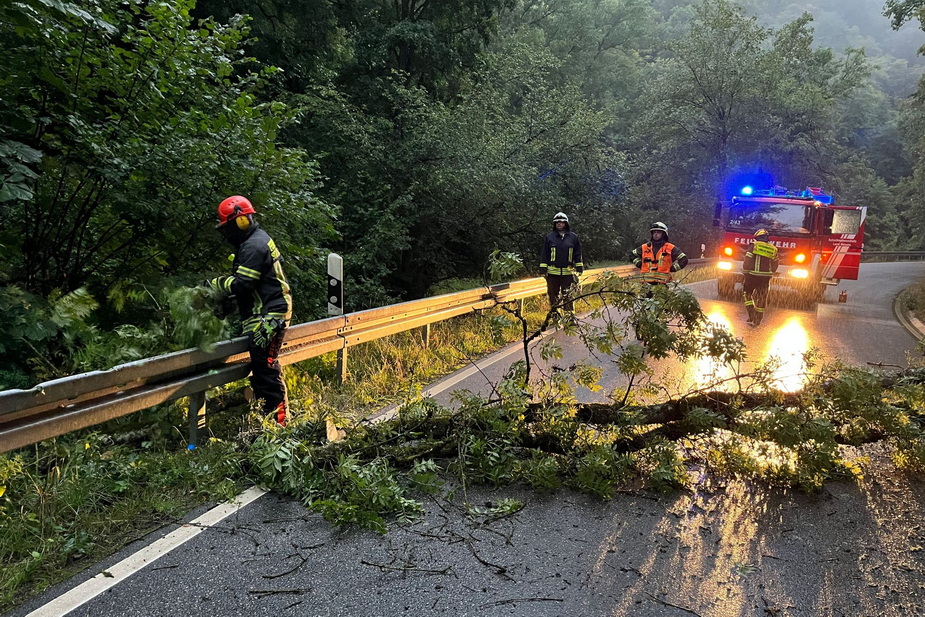 Offizieller Einsatzbericht: (TL) Die Feuerwehr Lorch wurde zu einem Unwetterschaden ins Wispertal gerufen. In einer Kurve nahe der Alten Villa war ein Baum umgestürzt