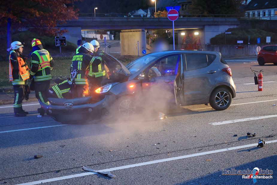 alle die Verunfallten Fahrzeuge verlassen, ein brennender PKW