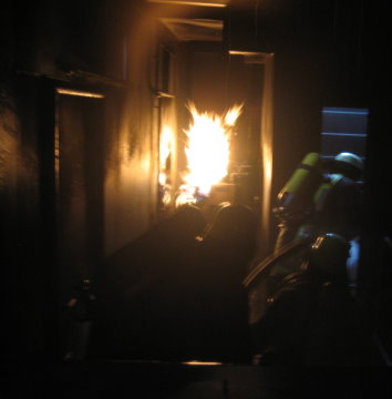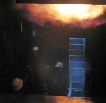 Brandraum und bekommt verschiedene Zenarien eingespielt