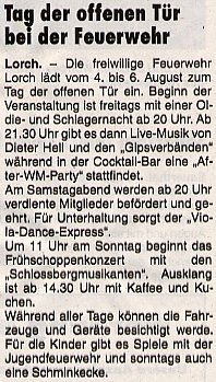 diesem Jahr wird sich die Freiwillige Feuerwehr Lorch wieder aktiv an