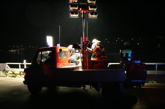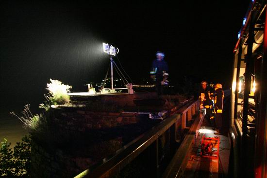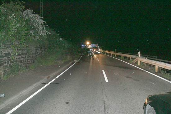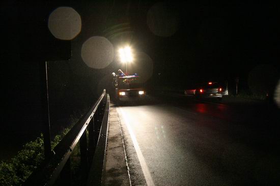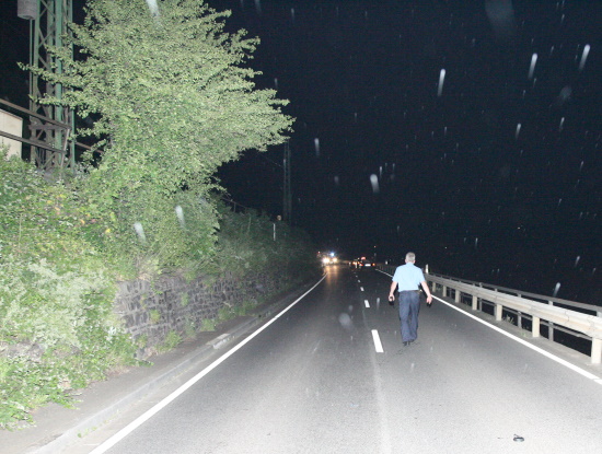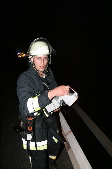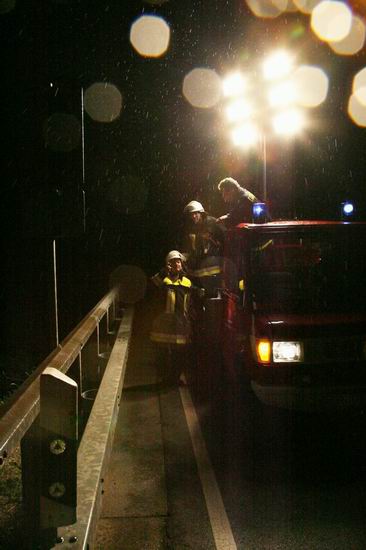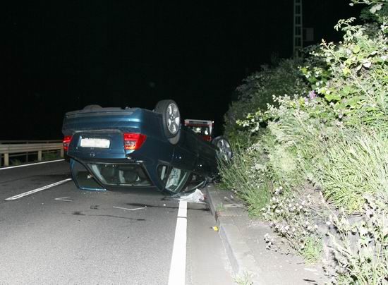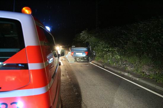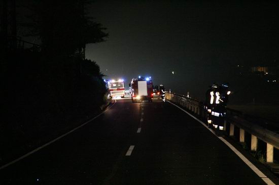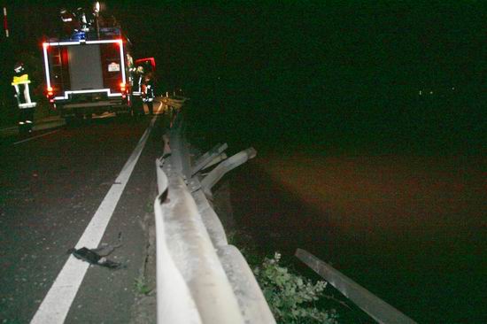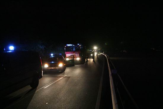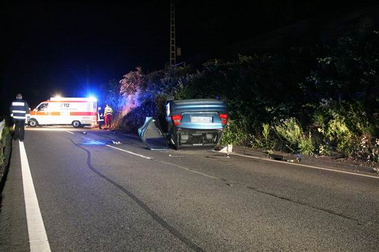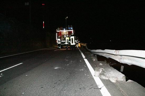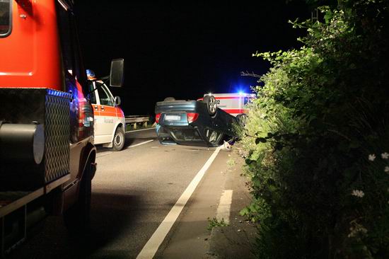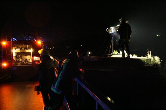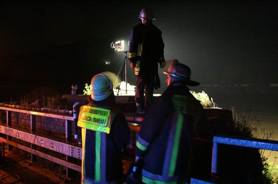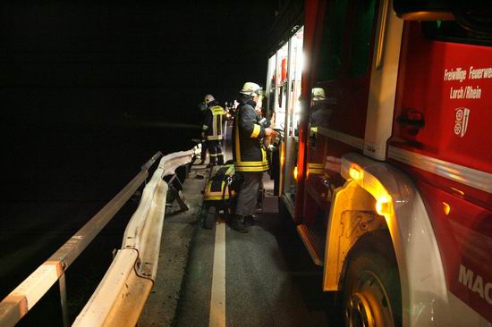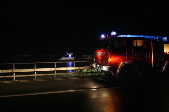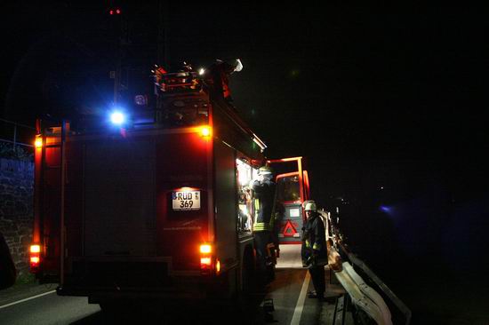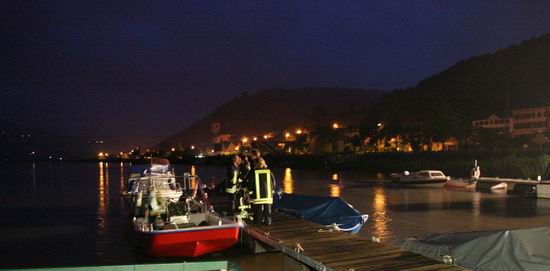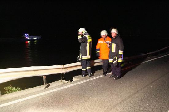 Gemeldet: Verkehrsunfall, Person eingeklemmt An der Einsatzstelle bot sich der Feuerwehr folgende Lage. Ein Pkw, aus Richtung Lorch kommend , war kurz nach Assmannshausen rechts in Leitplanke gekracht Überschlug sich dann und kam nach ca. 400 Metern links am Bahnsteig zum liegen. Die Meldung Person eingeklemmt bestätigte sich nicht, es war niemand mehr im Fahrzeug. Allerdings war auch nur noch der Beifahrer des Fahrzeugs an der Unfallstelle. Er konnte Leichtverletzt dem Rettungsdienst übergeben werden. Nach dem Fahrer wurde dann intensiv gesucht. Von den Rettungsbooten aus Lorch und Rüdesheim wurde der Uferbereich am Rhein abgesucht . Ein Hubschrauber der Polizei sucht im Gleisbereich und in den angrenzenden Weinbergen nach der Person. Die Suche wurde dann um 5.00 ohne Ergebnis abgebrochen.