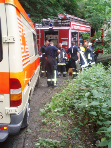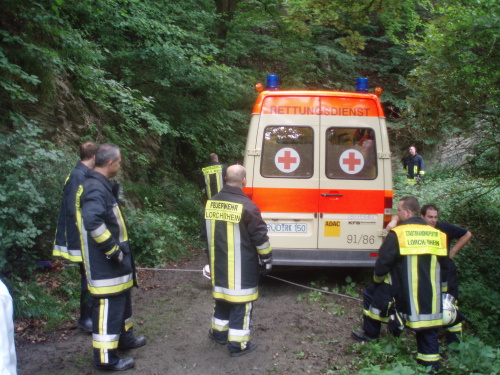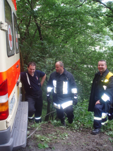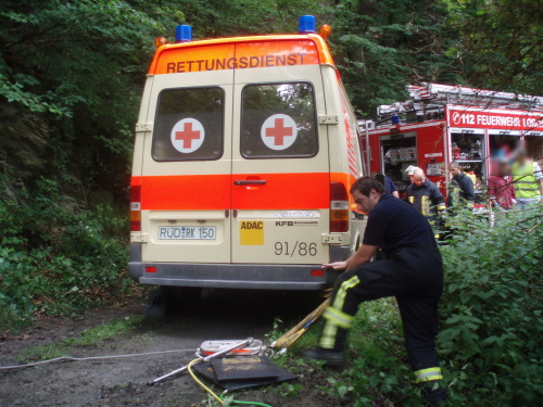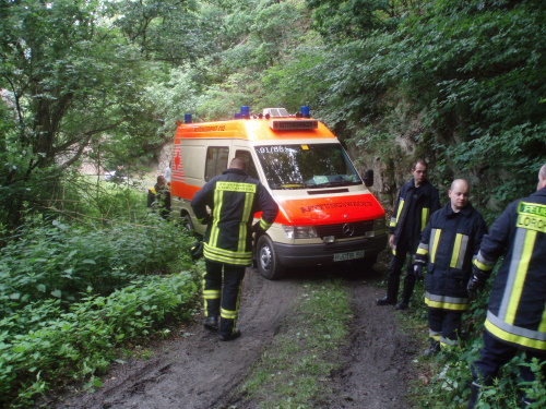 Gemeldet: Unterstützung für den Rettungsdienst An der Einsatzstelle hatte sich ein Rettungswagen festgefahren. Er drohte im weichen Waldboden weiter abzurutschen und dann umzustürzen. Als erstes wurde der Patient mit Hilfe der Feuerwehr aus dem Rettungswagen geholt und in einen anderen alarmierten Rettungswagen umgeladen. Dann wurde der Wagen mit dem Mehrzweckzug gesichert und mit Hebekissen stabilisiert. Dann wurde ein zweiter Mehrzweckzug an dem Lf 10 angeschlagen und langsam angezogen. Nach kurzer Zeit stand dann der Rettungswagen wieder sicher auf dem Waldweg und alle konnten den Einsatz beenden. |
