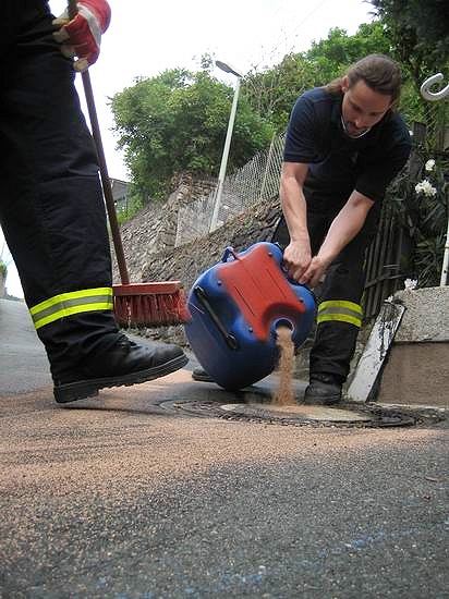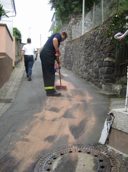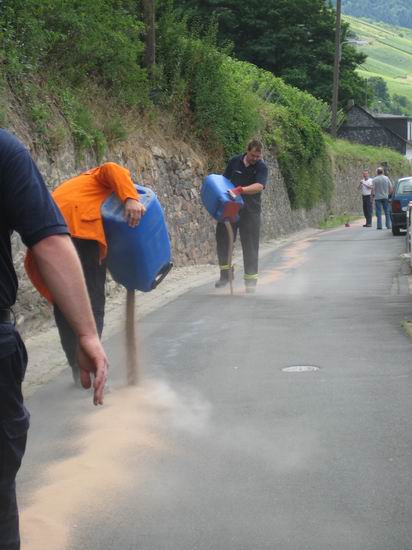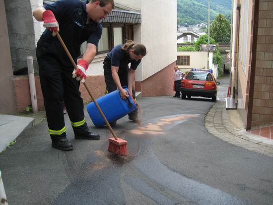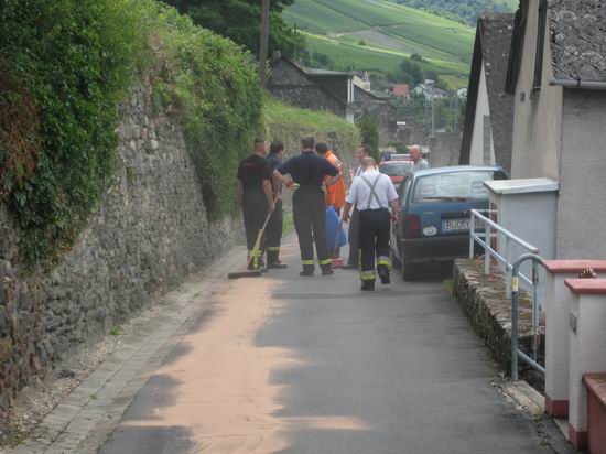 Gemeldet: Ölspur im Oberweg Im Bereich des Oberwegs hat sich ein Fahrzeug nach einem Unfall von der Unfallstelle entfernt und größere Mengen Betriebsstoff verloren. Die Ölspur ging von der Unfallstelle an der Mündung zur Rheinstraße über den Oberweg, Markt und verliert sich in der Bleichstraße.Die Feuerwehr hat die Ölspur an den gefährlichsten Punkten abgestreut und Warnschilder aufgestellt. |