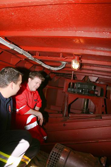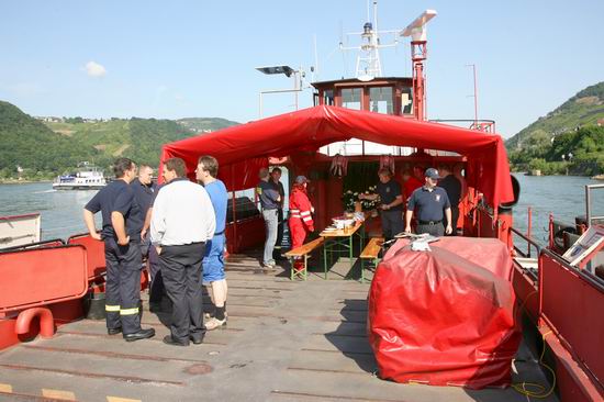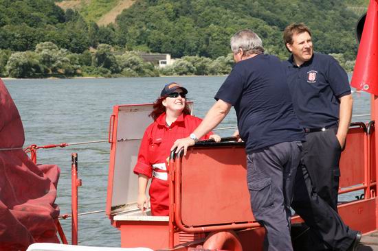 Feuerwehr Lorch am 05.07.08 zu Gast auf dem Feuerlöschboot RPL 5 |