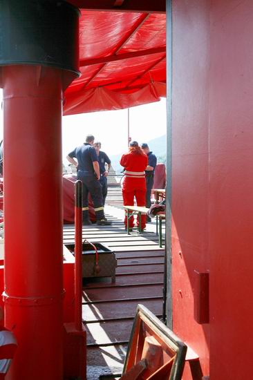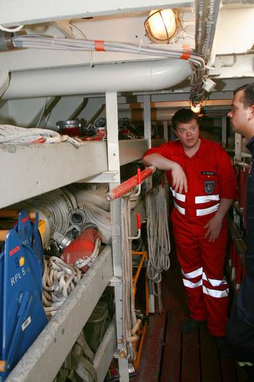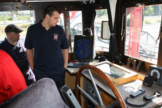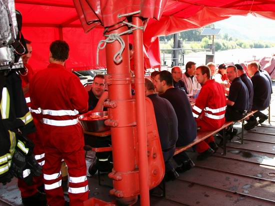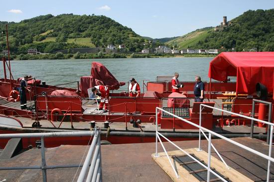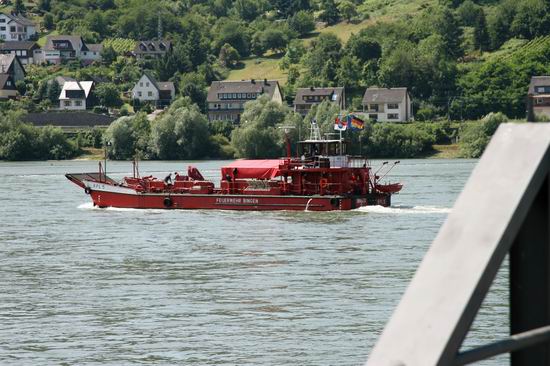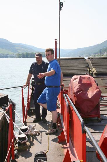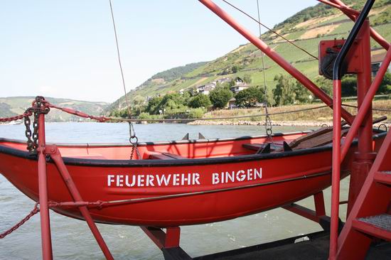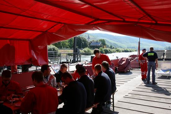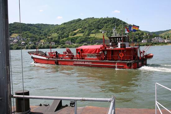 Lorch zu Gast auf der Binger Löschfähre RPL 5. Im Rahmen der Veranstaltung "Rhein in Flammen" machte die Löschfähre an dem KD Steeg in Lorch fest. Die Kameraden der Feuerwehr Lorch trafen sich morgens um 9 Uhr im Feuerwehrgerätehaus, um dort das gemeinsame Frühstück vorzubereiten. Nachdem alle Brötchen mit Wurst und Käse belegt waren, fuhren wir gemeinsam zum KD Anleger. Gegen 9 Uhr 30 machte die Binger Löschfähre am KD Steeg fest. Nach einer kurzen Begrüßung, frühstücken wir gemeinsam und lernten so die Kameraden aus Bingen näher kennen. Nach dem leckeren Frühstück ging es dann auf einen Rundgang durch die Löschfähre, auf der es sehr eng zugeht. Sehr Interessante Eindrücke und Kenntnisse über die Aufgabe der Binger Löschfähre konnten wir so mit nach Hause nehmen. Die Feuerwehr Lorch bedank sich nochmals die bei den Kameraden aus Bingen für den schönen und interessanten Vormittag. Bericht mit Fotos Rheingau Echo Ausgabe 10.07.2008 |