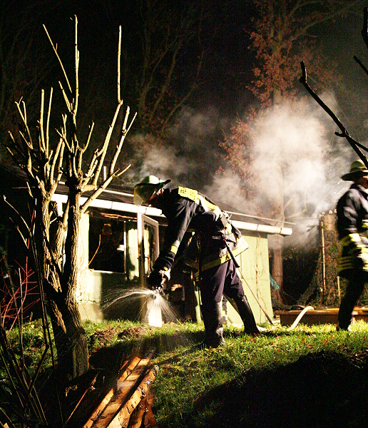 ein Feuerwehrmann leicht. Alarm 20.44 Uhr