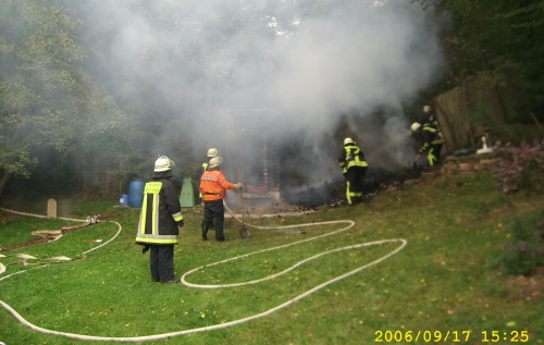 Die FF Lorch löschte das Feuer mit 2 C Rohren ab und übergab die Einsatzstelle an die Polizei.
