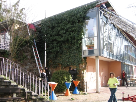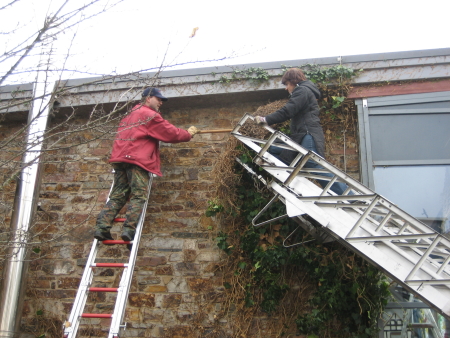 unterstützen die Eltern und Mitarbeiter des Kindergartens Lorch bei der Bewuchsentfernung