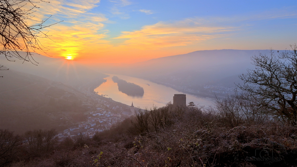 Rhein mit Blick auf Burg Sooneck