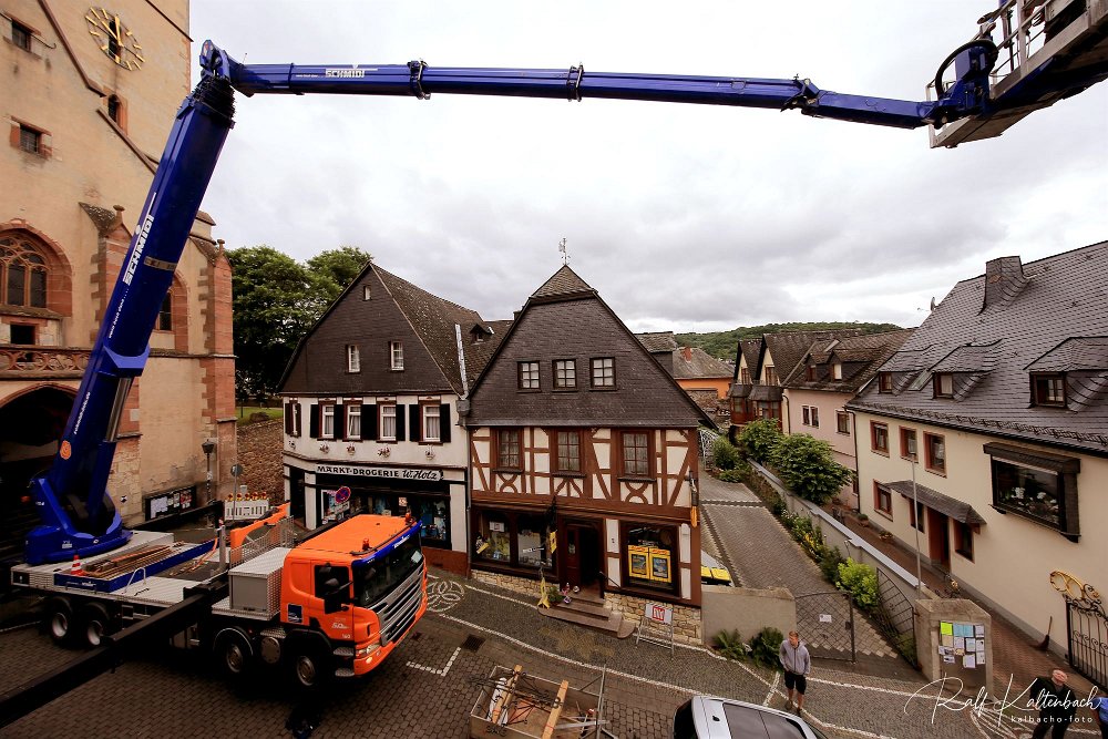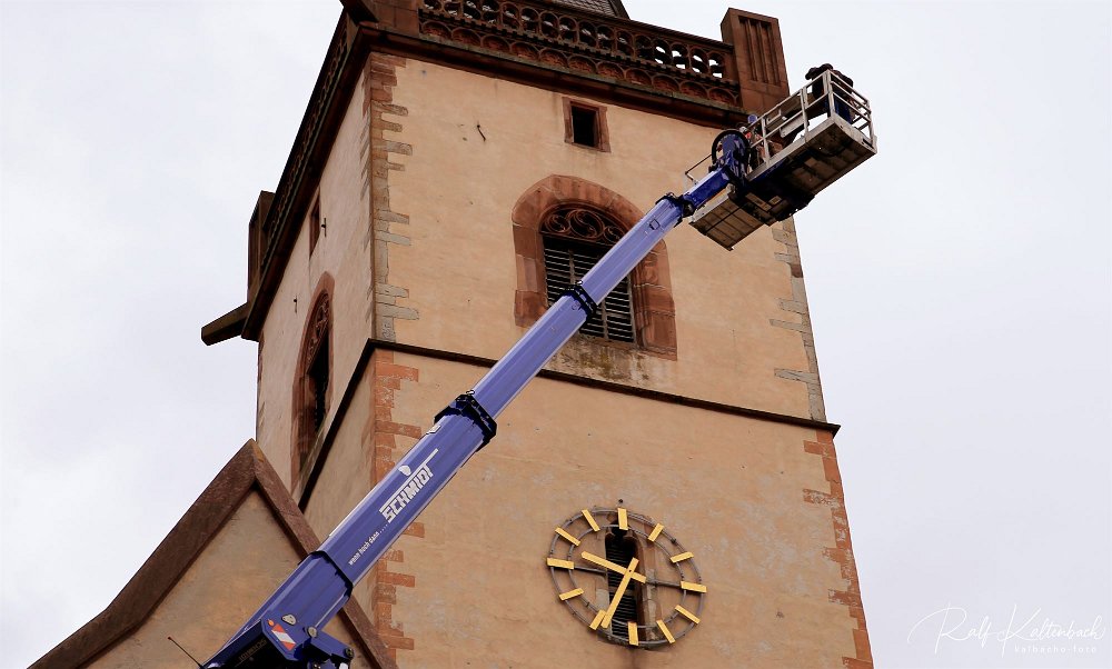 Am 11.1o.2o19 musste der Lorcher Gockel samt Spitze vom Turm abgebaut werden, wegen eines Sturmschaden