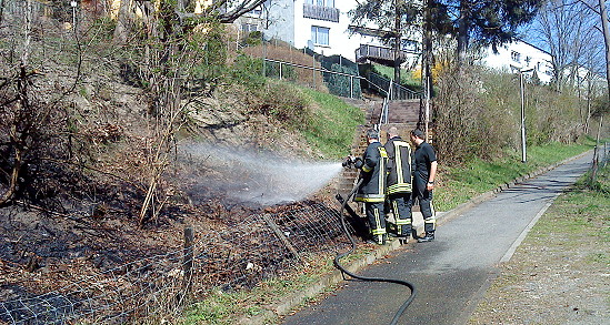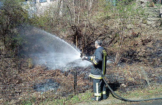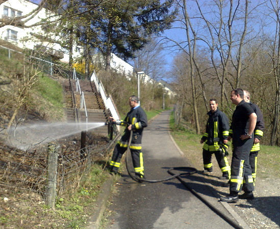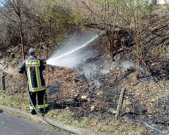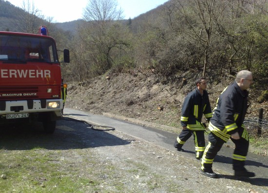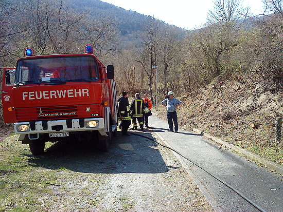Lage: Beim Eintreffen des Lorch 22 brannte eine Fläche von ca. 10 Quadratmeter. Das Feuer war bis auf ein paar kleinere Brandnester schon aus. Diese wurden mit dem Schnellangriff abgelöscht und die weiteren Kräfte abbestellt.