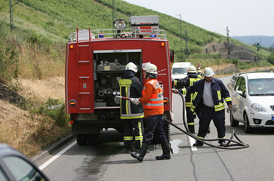 Feuer wurde schon vor Eintreffen der FF Lorch durch die SM Geisenheim gelöscht, Nachlöscharbeiten wurden mir einem C Rohr durchgeführt.