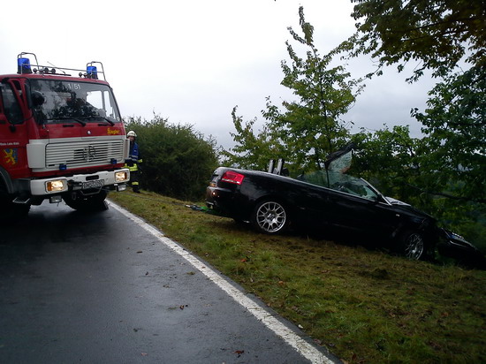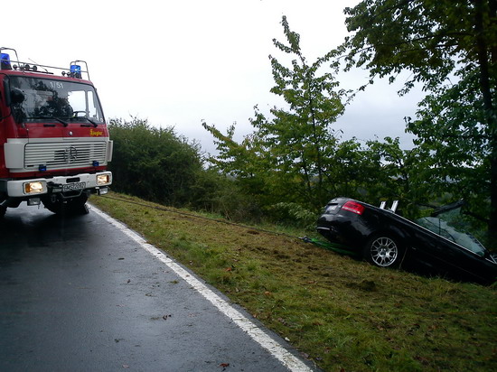 kam nach links von der Fahrbahn ab und prallte gegen einen Baum.