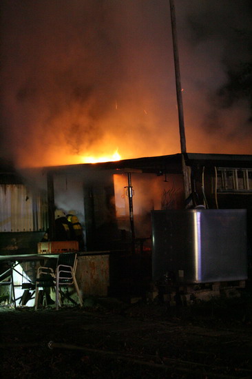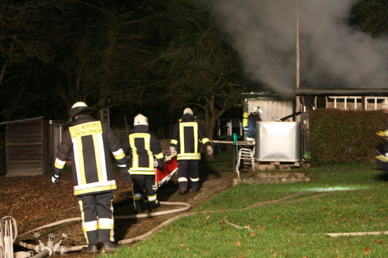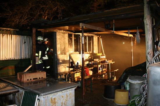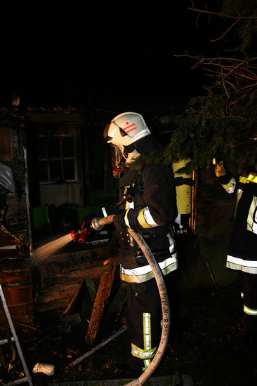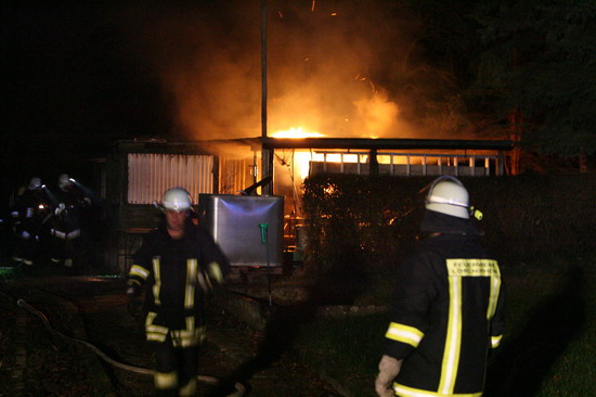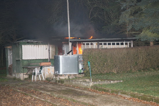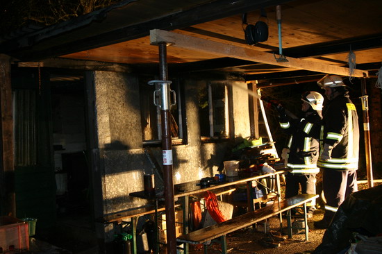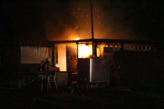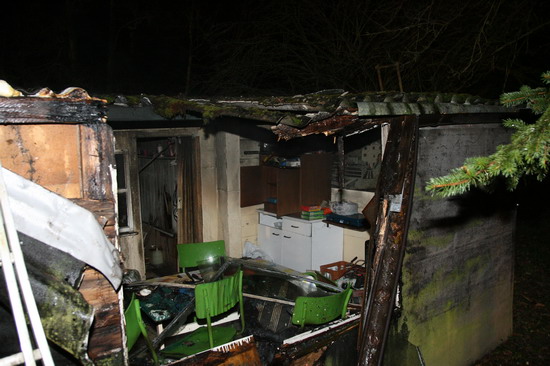 Brandstiftung brannte eine 5 mal 6 Meter große Gartenhütte in voller