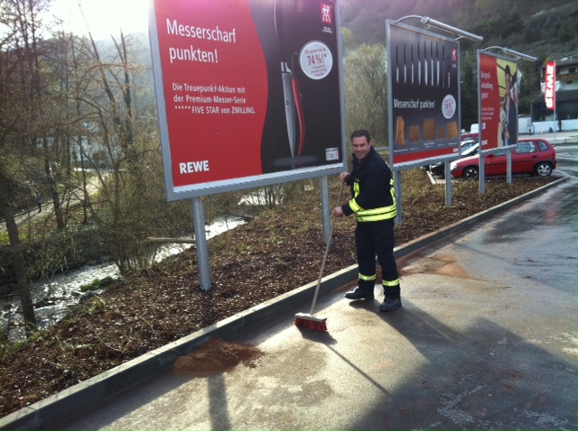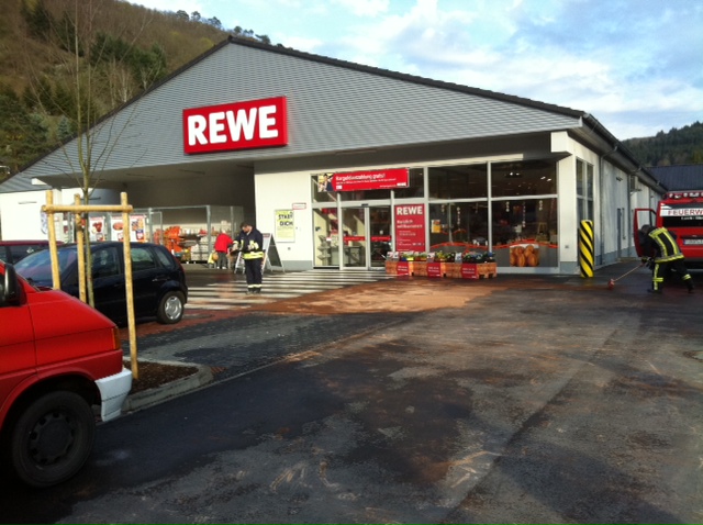 Großer Ölfleck auf dem REWE Parkplatz
